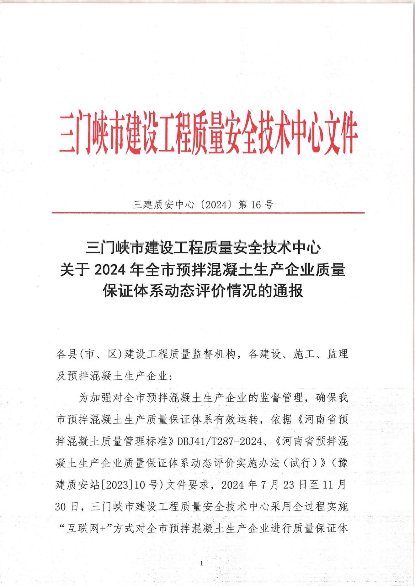 2024年预拌混凝土企业质保体系动态评价情况通报